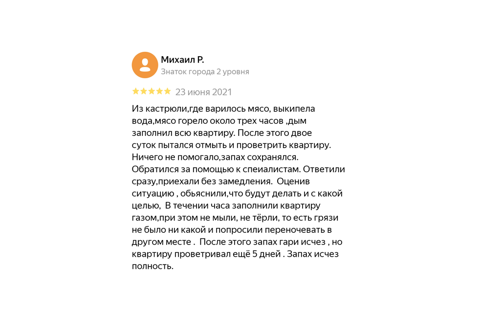 Удаление запаха гари в квартире после пожара, задымления и сгоревшей еды